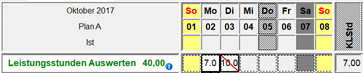 In diesem Konto werden die Leistungsstunden der jeweiligen Planungseinheit angezeigt.
