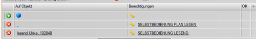 Folgende Rechte sind beim Selbstbediener hinterlegt: