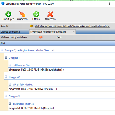 Die verfügbaren Mitarbeiter werden angezeigt: es ist ersichtlich