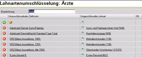 Die Lohnartenumschlüsselung verbindet die Lohnart mit dem Zeitkonto.