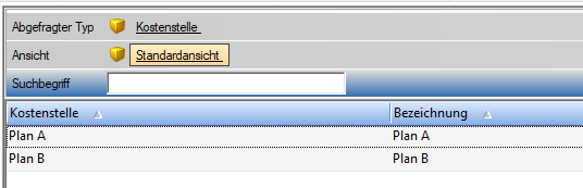 Über das Fernglas, sind die vorhanden Kostenstellen ersichtlich.