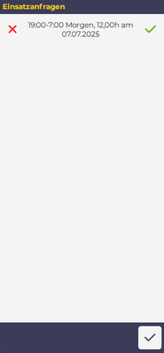 Es wird die Einsatzanfrage in der App nicht mehr angezeigt. Im Falle einer Übernahme per E-Mail durch das Personal bekommt dieser die Nachricht Einsatzanfrage verfallen. [3]