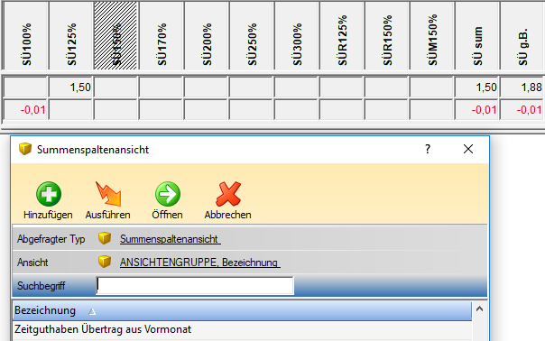 Ab der Version 2018.22 gibt es im 7up eine neue Standard-Summenspaltenansicht "Zeitguthaben Übertrag aus Vormonat":