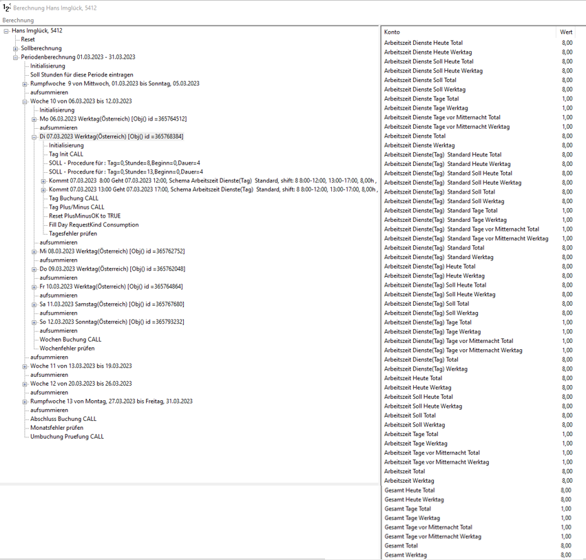 | Abrechnungsergebnis für den 7.3.2023 für Hr. Imglück |
