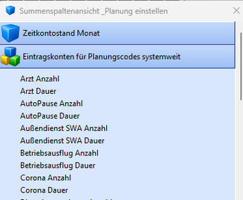 Hier wird für jeden Planungscode ein Zeitkonto für die