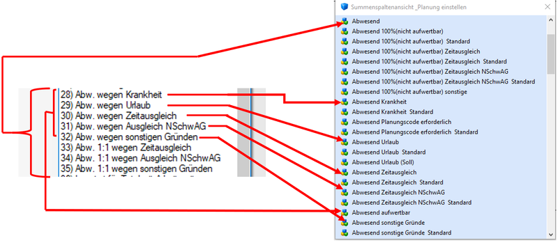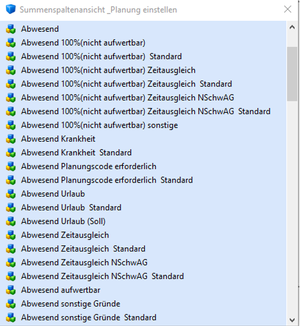 - Abwesend Planungscode erforderlich Standard
