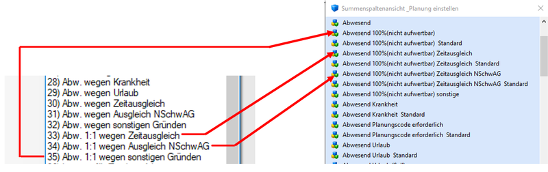- Abwesend 100%(nicht aufwertbar) Zeitausgleich Standard