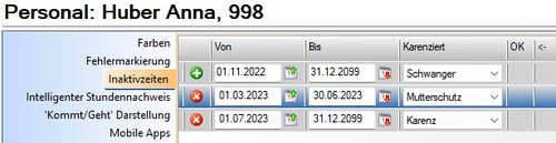 Inaktivzeiten sind eine Programmfunktion zum Verwalten von längeren Zeiträumen wie z. B. Karenzzeiten.