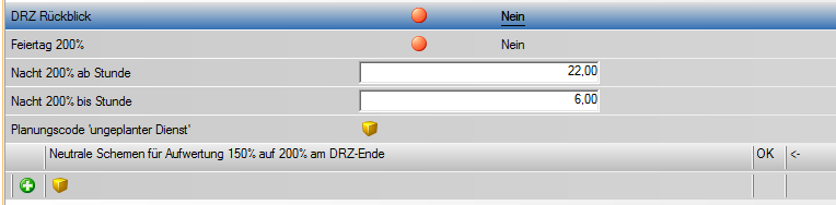 Sind Abwesenheiten (Krankheit, Urlaub, etc.) in den letzten Stunden des DRZ enthalten, so werden diese ebenfalls je nach Lage bewertet. Ein geplanter Urlaub (z.B. 8h lt. Soll) ist somit eine 50%ige Überstunde. Wird ein Mitarbeiter an einem geplanten Nachtdienst krank, so werden die Stunden genau nach Lage bewertet.