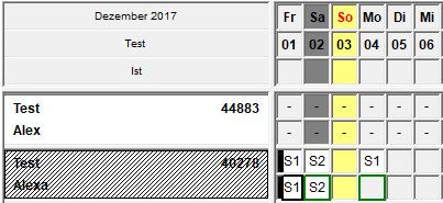 - Die Plan- und Istzeile sind mit Diensten befüllt