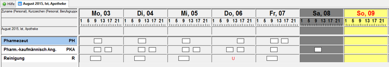 Anschließend werden die Dienste in der Farbe der Berufsgruppe hinterlegt: