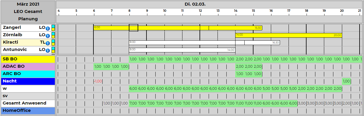 Für jede Aufgabe wird definiert, wie viele Personen zu welcher Uhrzeit notwendig sind.