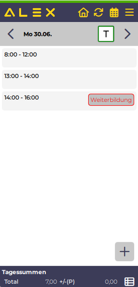 Diese wird bei manueller Zeiterfassung wie auch bei der elektronischer Zeiterfassung angezeigt.