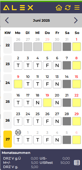 | Klick auf das jeweilige Dienstsymbol / auf den Tag |