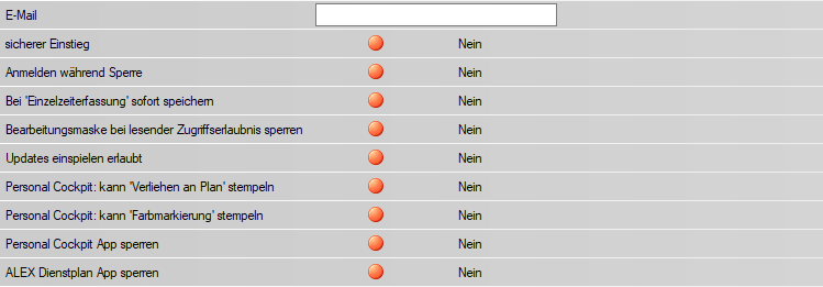 • E-Mail: Hier können die EMail Adresse der Mitarbeiter hinterlegt werden.