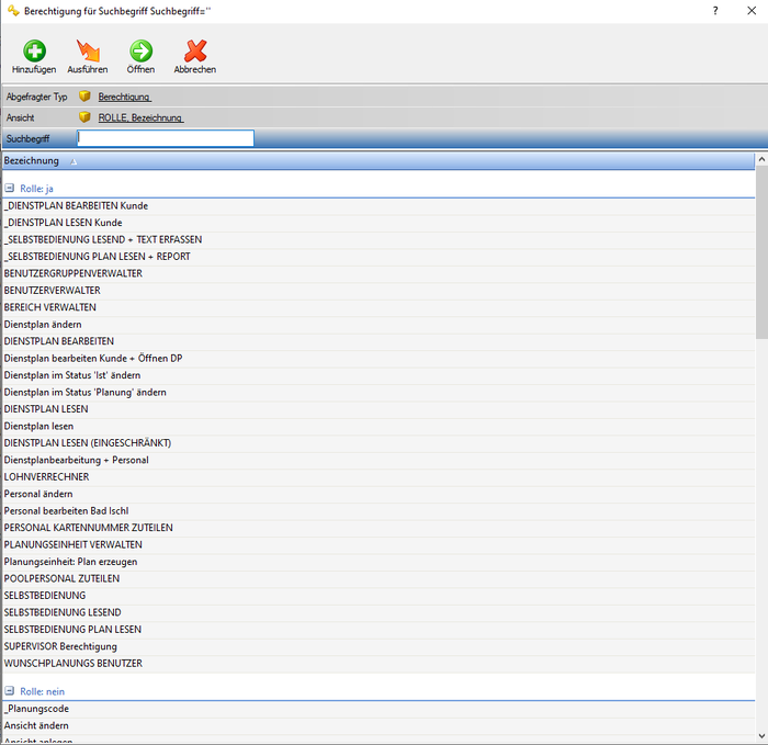 • Wenn Sie auf die Lupe klicken, gelangen Sie zu der Übersicht der Rollen und Berechtigungen.