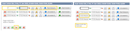 - Dienstzeiten können verlängert/verkürzt werden, indem Sie z.B. das vorgeschlagene Dienstende verändern.
