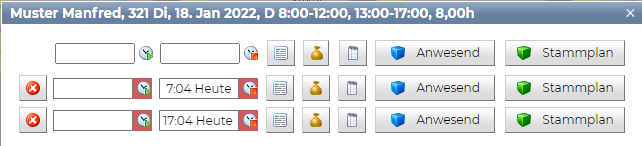 Spezielle Tätigkeiten oder Abwesenheiten (=Planungscodes) werden durch Klick auf die Schaltfläche „Anwesend“ ausgewählt.