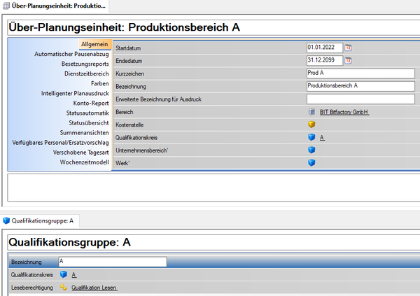 • Der gleiche Qualifikationskreis muss bei der Planungseinheit und bei der Qualifikationsgruppe hinterlegt sein