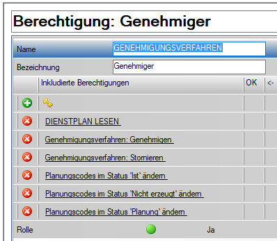 - Dienstplan lesen: wird benötigt, damit der Genehmigergruppenplan geöffnet werden kann
