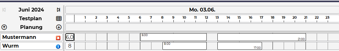 | Kein 'Roter Strich' bei fremden Diensten | Ist ein Mitarbeiter auf einen anderen Plan verliehen und wird vom anderen Plan ein Dienst eingetragen, so ist dies mit dem roten Strich ersichtlich.