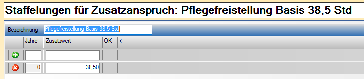 Kann genauso mit "Staffelung für Zusatzanspruch" gelöst werden. Falls in einer Datenbank unterschiedliche Wochen-Normalarbeitszeiten hinterlegt sind, muss das über die Staffelungen hinterlegt werden. Beispiel: