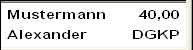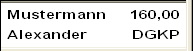 das Wochensoll (als "Vorname, Wochensoll" bzw. "Zuname, Wochensoll") und