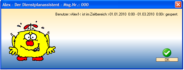 Wenn ein Benutzer gesperrt ist, erscheint bei dessem Einstiegsversuch folgendes Fenster: