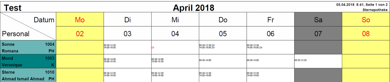 Ist die Funktion "Zeitstempel anzeigen" aktiviert, so ist ein Monatsplan-Ausdruck nicht mehr ratsam, da nicht genügend Platz für die gesamten Zeiten zur Verfügung steht.