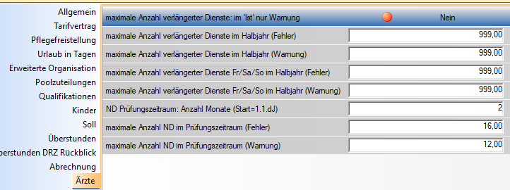 Hier kann festgelegt werden, wieviele verlängerte Dienste pro Monat geplant werden dürfen. Als verlängerter Dienst zählen alle Dienste über 13 Stunden.