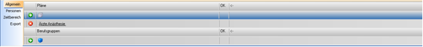 Unter der Kartei „Allgemein“ werden die Planungseinheiten und Berufsgruppen festgelegt. Wenn die Auswertung für Einzelmitarbeiter gedacht ist, kann von einer zusätzlichen Auswahl der Planungseinheit abgesehen werden. Fehlt die Berufsgruppenauswahl, werden alle Berufsgruppen für die Auswertung herangezogen. Ab V2015 können auch ganze Bereiche für die Auswahl selektiert werden.
