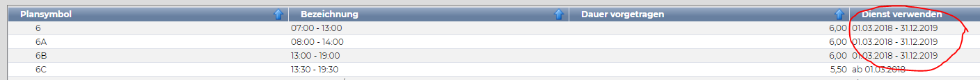 Der Dienst läuft mit dem eingegebenen Stichtag aus und ist ab dem nächsten Monat nicht mehr am Dienstplan ersichtlich.