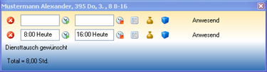 Im Kommt-/Gehtzeitenfenster wird der getauschte Dienst ebenfalls gekennzeichnet.