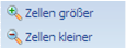 Die Zellengröße des Arbeitsblattes kann mittels Klick auf „Zellen größer“ bzw. „Zellen kleiner“ verändert werden.