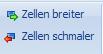 Die Zellenbreite des Arbeitsblattes kann mittels Klick auf „Zellen breiter“ bzw. „Zellen schmaler“ verändert werden.