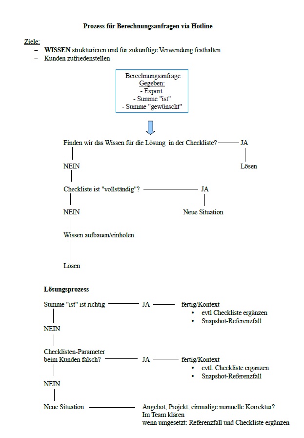 - Verbesserung des Hotline-Prozesses bei Berechnungsanfragen