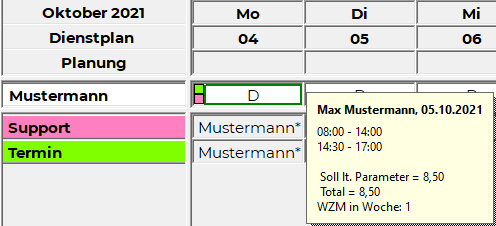 Hat ein Mitarbeiter an einem Tag mehr als eine Aufgabe zugeteilt, so wird neben seinem Namen im Besetzungsreport nun ein * angezeigt.