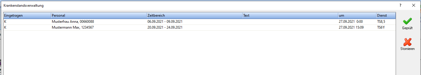 | Ansicht Krankenstandsverwaltung |