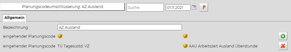 • Arbeitszeiten werden z.B. mit dem Planungscode "Arbeitszeit Ausland" oder "Arbeitszeit Inland" hinterlegt