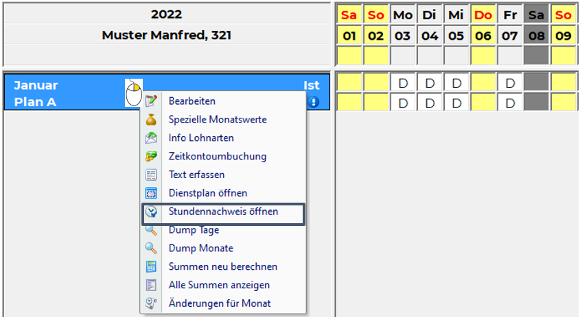 Der Dienstplan öffnet sich durch einen Klick auf diesen Eintrag: