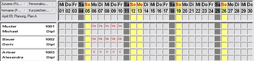 Je nach Status werden die Urlaube im Dienstplan wie folgt angezeigt: