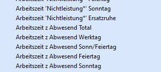 Für jedes Arbeitszeit-Schema gibt es folgende z-Abwesend-Konten: