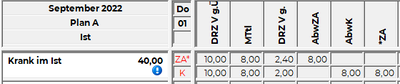 Es werden 8 Stunden als Krankenstand im Total gerechnet und kein Zeitausgleichskonsum abgezogen. Konsum bei Krankenstand Wird der Zeitausgleich als konsumiert gerechnet, so wird der Saldo trotz Krankenstand auf 2 Stunden reduziert.