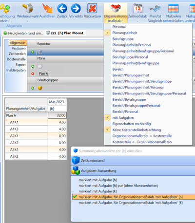 Bei Verwendung der Aufgaben als Kostenart, muss am Tätigkeitsnachweis die Kostenstelle zusätzlich zur Aufgabe ausgewiesen werden.