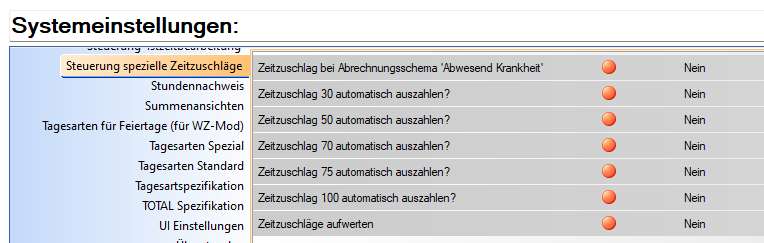 Kontrolle der Parameter in der Gruppe "Steuerung Zeitzuschläge div. KV's", diese sind hier wie folgt gesetzt: