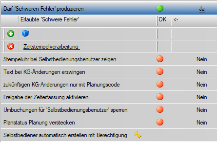 - D.h., dass z.B. Eingaben, welche einen AZG-Fehler oder Tages/Wochenüberstunden auslösen würden, durch den SB-Benutzer nicht getätigt werden können, solang hier auf NEIN gestellt ist.