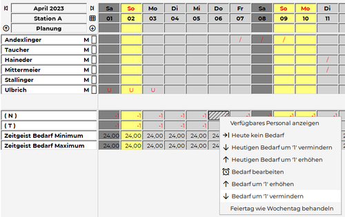 - Rechte-Maus-Klick in der Besetzungsanzeige auf einen bestimmten Tag