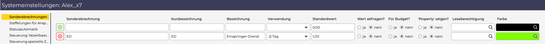 Beispiel: Anlage einer Sonderabrechnung zum Erfassen der Vertretungszulage pro Tag: