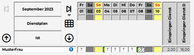 Anzeige der Sonderabrechnung in der Legende Anzeige im Dienstplan nach Eintragung der Sonderabrechnung
