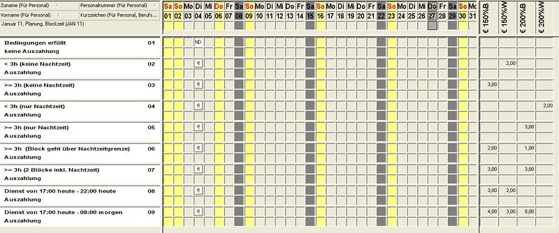 Spezielle Abrechnungsschemen (z.B. Rufbereitschaften) können beispielsweise fix als steuerbegünstigt ausgezahlt werden, egal ob die Blockzeit erfüllt ist oder nicht.